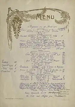 - ↑ Menu du 16 août 1923, coll. privée JC.