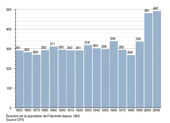 Le graphique suivant résume l'évolution de la population de Fräschels entre 1850 et 2008[3] :