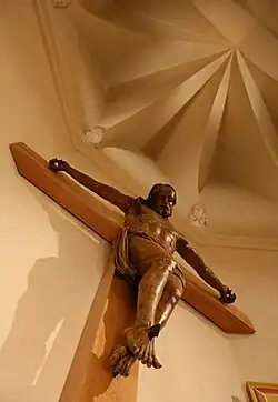 Des fresques ont été peintes en juin 2007 et juin 2008, par Paolo Orlando, iconographe italien. Ces images représentent des figures de sainteté bibliques ou franciscaines. Dans le chœur ont été placées quatre scènes évangéliques de la miséricorde divine entourées par des saintes et des saints franciscains qui l’ont vécue, comme celle de la Brebis perdue (Luc 15). En haut de la fresque, le troupeau paît sur une montagne verdoyante et se repose. On y voit une des images du royaume, telle que l’évoque le psaume 22 : « Le Seigneur est mon berger : je ne manque de rien. Sur des prés d'herbe fraîche, il me fait reposer ». Le bas de la scène contraste avec son buisson épineux, signe d’aridité, et la caverne noire, symbole de la mort. Le pasteur, sous les traits du Christ, s’incline pour sauver la brebis perdue. Ses gestes sont humbles et tendres ; son regard plein de compassion et de miséricorde. Comme les Pères de l'Église l’ont bien saisi, la parabole est une évocation du Christ descendant aux enfers pour ramener Adam au paradis. De part et d’autre de la scène évangélique, deux prêtres qui passèrent de nombreuses heures au confessionnal : le curé d’Ars qui se tourne vers la croix et Léopold Mandic, capucin du XXe siècle qui vécut à Padoue.