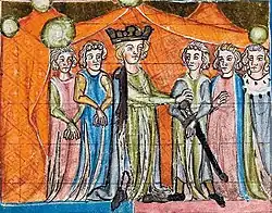 Représentation contemporaine de Frédéric VI dans l'Historia Welforum (vers 1179-1191). | |
