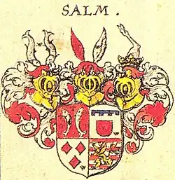 - ↑ Ainsi en août 1786, la marquise de Créquy écrit à Senac de Meilhan : « Le Salm est ici, cherchant à tout vendre et à piaffer ; le baron de Breteuil soutient qu'il n'en a pas pour deux ans, et que l'hôpital sera sa fin », Lettres inédites de la marquise de Créqui, p. 59-61.