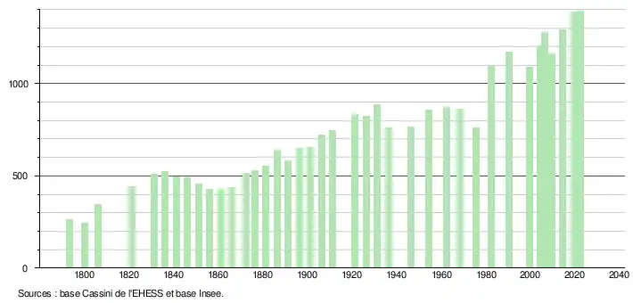 - ↑ Fiches Insee - Populations de référence de la commune pour les années 2006, 2007, 2008, 2009, 2010, 2011, 2012, 2013, 2014, 2015, 2016, 2017, 2018, 2019, 2020, 2021 et 2022.