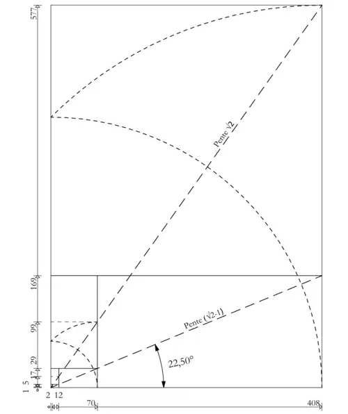 Avec cette méthode géométrique particulièrement simple il est aisé de retrouver l'approximation telle qu'elle fut exprimée par Archimède, au IIIe siècle de notre ère, dans son traité De la mesure du Cercle. De la même façon, la construction géométrique par une série de carrés alternés donne les nombres de la suite de Fibonacci avec une pente de valeur