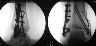 - ↑ (en) « Management of Posttraumatic Ankle Arthritis: Literature Review », Current Reviews in Musculoskeletal Medicine, vol. 11, no 4, , p. 546–557 (PMID 30327933, PMCID 6220012, DOI 10.1007/s12178-018-9525-9)
