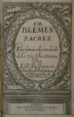 - Emblesmes sacrez, pour servir à la conduite de la vie chestienne... inventées et expliquées en vers françois... par le P. F. Berthod, religieux de l’Observance de Saint-François. - Paris : Étienne Loyson, 1665. 2 parties 12°.