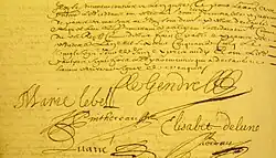 - ↑ Le mariage de Le Gendre donne lieu à contrat ; à lire dans le fichier dit 'général' XVIIe – XVIIIe siècles. Le consulter via la BNF ici
