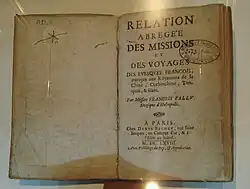 - Relation abrégée des missions et des voyages des evesques françois envoyez aux royaumes de la Chine, Cochinchine, Tonkin & Siam. Paris, Denys Bechet, 1668. In-12, 6 ff., 148 pp.