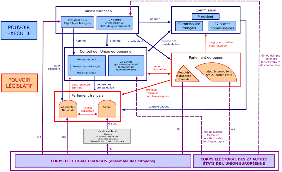 À partir des années 1950, elle est l'un des acteurs de la construction de l'Union européenne, l'un des cinq membres permanents du Conseil de sécurité des Nations unies et membre de l'OTAN. La France est également membre du G7, du G20, de l'Organisation Internationale de la Francophonie et de la zone euro, et abrite le siège de plusieurs organisations internationales dont le Conseil de l'Europe, l'UNESCO, l'OCDE, Interpol, et le Centre international de recherche sur le cancer. Depuis la Déclaration des droits de l'homme et du citoyen de 1789, première déclaration des droits humains, la France a maintenu un rôle notable dans l'élaboration du droit international concernant les droits de l'Homme. Comptant le cinquième budget de la Défense au monde, elle est la septième puissance militaire mondiale et dans les cinq premiers en nombre de têtes nucléaires. Elle exerce une influence notable en matière politique, économique, militaire, diplomatique, linguistique et culturelle, en Europe et dans le reste du monde.