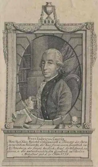 En 1783, il est invité en Russie par le maréchal comte Pierre Alexandrovitch Roumiantsev-Zadounaïsky, à l'instigation de l'impératrice Catherine, qui lui offre le poste de directeur des Salines de Staraïa Roussa[14], selon des conditions financières très avantageuses.