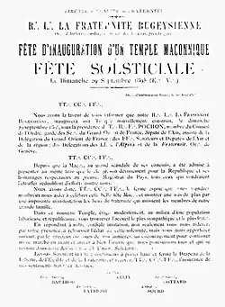 « Dans ce nouveau temple, érigé modestement, au milieu d'une population laborieuse et républicaine, vous trouverez l'accueil le plus sympathique et le plus fraternel »[3].