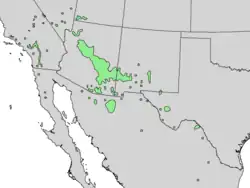 En Arizona, l'aire de répartition de Fraxinus velutina est centrée sur le Mogollon Rim, du nord-ouest dans les canyons nourriciers du Grand Canyon du sud de l'Utah et du Nevada, jusqu'aux Montagnes Blanches (Arizona), dans la même zone montagneuse de l'ouest du Nouveau-Mexique, puis vers la vallée du Rio Grande au sud jusqu'à Trans-Pecos au Texas. En Arizona et dans le nord de Sonora, il se trouve également dans les Sky islands, comme l'archipel Madrean, et se trouve dans le centre-sud de l'Arizona, dans les montagnes du désert de Sonora. Des populations dispersées se trouvent vers l'est à travers les régions du désert de Chihuahua de Chihuahua, Coahuila et Nuevo León[4].