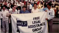 - Arno Sanidad, secrétaire général adjoint du FLAG, professeur de droit et membre du Conseil régional des droits de l'homme en Asie, dont le cabinet d'avocats sert d'adresse postale au FLAG pour les plaintes déposées concernant les abus et les rapports de violations des droits de l'homme ;