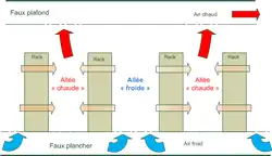 Ceci peut être réalisé en installant un jet d'air plus frais qui provient de l'extérieur en supplément du refroidisseur existant. Pendant l'utilisation, un processeur choisit entre le refroidisseur existant ou le système de free cooling, afin de faire des économies d'énergie. Ces économies peuvent aller jusqu'à 75 %, sans compromettre les exigences de refroidissement d'un centre de traitement de données.