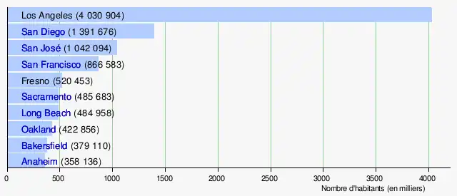 Population des dix villes de Californie les plus peuplées (2016)[6]
