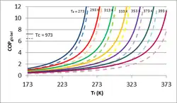 Quand Tf s’approche de Ta, le COP tend vers l’infini. Cependant, ceci implique que le rapport volumétrique r tende lui aussi vers l’infini, ce qui est impossible.