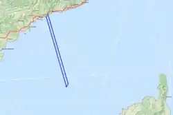 Finalement, les frontières maritimes forment un quadrilatère d'environ 90 km de long (quasiment 50 milles marins) sur près d'1,9 km de large (environ 1 mille marin). Au total, elles s'étendent sur environ 185 km (100 milles marins).