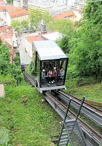 L'idée d'avoir un funiculaire allant au château remonte à 1897, quand le maire Ivan Hribar écrivit aux autorités austro-hongroises demandant un ascenseur qui monterait au château. Il a été inauguré le 28 décembre 2006[1]. Le funiculaire est populaire auprès des touristes. Il circule entre 10h00 et 21h00 en hiver, et de 10h00 à 22h00 en été, et le voyage complet dure 60 secondes[2].