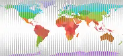 C'est ce même principe de développement qui est utilisé en cartographie dans le développement de la sphère terrestre selon la transverse universelle de Mercator dans laquelle la sphère est découpée en 60 fuseaux, chacun de ces fuseaux étant représenté ensuite suivant une projection de Mercator transverse centrée sur le méridien médian de chaque fuseau.