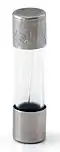 - Le courant demandé par la charge traverse entièrement le fusible. Lorsque ce courant dépasse le calibre, à savoir une valeur spécifique pendant un temps précis, la partie conductrice du fusible fond et ouvre le circuit. Certains modèles sont munis d'un témoin mécanique indiquant que le fusible a fondu.