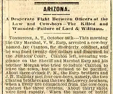 Les quelque trente secondes de fusillade qui se sont déroulées le 26 octobre à 15 heures, connues à partir des années 1950 (d'après le titre d'un film) comme la « fusillade d'O.K. Corral », sont sans doute le plus célèbre affrontement armé de l'histoire de la conquête de l'Ouest car elles ont fait l'objet de nombreux livres et films. On ne sait pas qui a déclenché la fusillade. Les factions partisanes ont raconté des histoires contradictoires et les témoins oculaires indépendants qui ne pouvaient identifier les participants furent incapables d'émettre des certitudes.