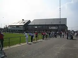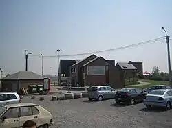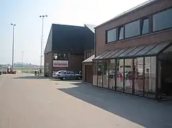 Vue d'ensemble des bâtiments, avec au fond à droite la salle abritant le terrain synthétique.