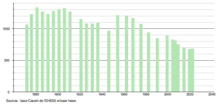 685 hab. (2022 en évolution de +1,78 % par rapport à 2016)