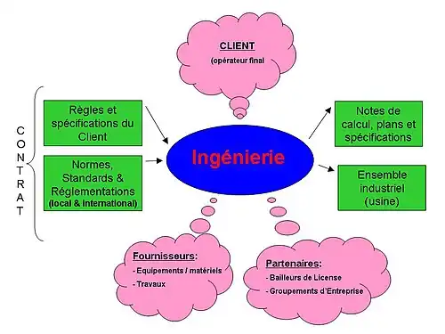 Dans le cadre de l’ingénierie de procédés industriels le projet à réaliser est un ouvrage (système, usine, site industriel). Pour appréhender la complexité de ces projets, un client (maître d’ouvrage) fait appel à une société d’ingénierie (maître d’œuvre). La société d’ingénierie se charge de coordonner les différents corps de métiers intervenant sur le projet dans le respect du cahier des charges contractuel. C’est une activité en évolution permanente du fait d’une intense compétition internationale.