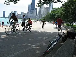 Pour faciliter les déplacements à vélo, le Chicago Department of Transportation (CDOT) a lancé le Chicago Bicycle Program dans les années 2000, un programme visant à augmenter le nombre de voies cyclables à travers la ville et a promouvoir les transports doux auprès des élèves dans les écoles publiques de Chicago. En 2019, la ville possède près de 490 km de voies cyclables sur son territoire. Depuis 2013, Chicago est dotée d'un système de vélos en libre-service appelé « Divvy » qui exploite une flotte de 4 760 vélos répartis à travers 476 stations dans la ville[44]. En 2014, les vélos étaient empruntés quotidiennement par plus de 13 000 utilisateurs[45]. En outre, la ville comprend plusieurs jardins botaniques et conservatoires dont les plus importants sont le jardin botanique de Chicago (Chicago Botanic Garden), le jardin botanique de Lincoln Park (Lincoln Park Botanical Garden) et le conservatoire de Garfield Park (Garfield Park Conservatory) qui tous trois renferment d'importantes collections horticoles et de plantes exotiques rares ou menacées qui proviennent des quatre coins du monde. Ces institutions prévoient des programmes éducatifs et communautaires destinés à sensibiliser les visiteurs sur l'environnement et la sauvegarde de la biodiversité florale[46]. Le zoo de Lincoln Park (Lincoln Park Zoo) mène des projets similaires concernant la protection animale et la conservation de la nature[47].