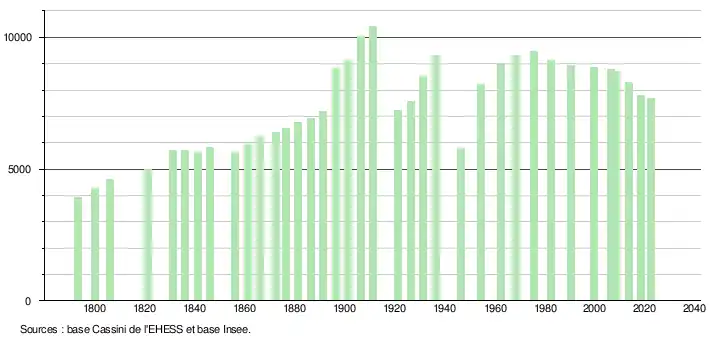 - ↑ Fiches Insee - Populations de référence de la commune pour les années 2006, 2007, 2008, 2009, 2010, 2011, 2012, 2013, 2014, 2015, 2016, 2017, 2018, 2019, 2020, 2021 et 2022.