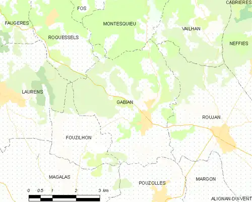 - ↑ « Orthodromie entre Gabian et Roujan », sur fr.distance.to (consulté le ).