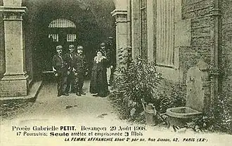 - ↑ Fédération internationale des centres d'études et de documentation libertaires : [Procès de Gabrielle Petit, Besançon, 29 août 1908.