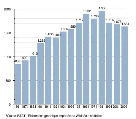 - ↑ (it) Popolazione residente e bilancio demografico sur le site de l'ISTAT.