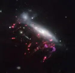 - ↑ (en) K. George, B. M. Poggianti, N. Tomičić et J. Postma, « Ultraviolet imaging observations of three jellyfish galaxies: star formation suppression in the centre and ongoing star formation in stripped tails », Monthly Notices of the Royal Astronomical Society, vol. 519, , p. 2426–2437 (ISSN 0035-8711, DOI 10.1093/mnras/stac3593, lire en ligne, consulté le )