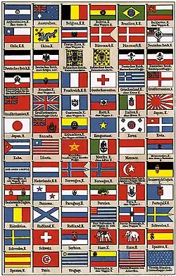 Chaque État souverain peut avoir plusieurs drapeaux différents (national, civil, royal ou présidentiel, ministériel, enseignes militaires, pavillons de marine militaires ou civils, drapeaux de territoires subordonnés, associés ou autonomes...). Seuls les drapeaux nationaux civils sont présentés ici.