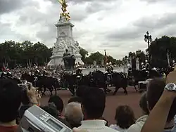La garde de la reine à Londres change sur le parvis du palais de Buckingham à 11h00 tous les jours au début de l'été et quatre fois par semaine sinon[18].