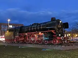 - Une locomotive à vapeur de la série 01.10 (de) (avec le numéro 01 1063) se trouve au nord du bâtiment de la gare depuis avril 1977. La révision de cette locomotive, mise en service en 1940, après sa mise hors service régulière, est la dernière effectuée par l'atelier de réparation de Brunswick (de) avant sa fermeture en 1977[14].