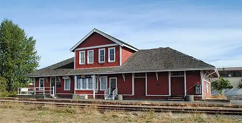 Elle est conçue par R.A. Bainbridge, ingénieur divisionnaire du Canadien Pacifique[1], suivant le plan n°9 de la compagnie[3]. La construction est en ossature bois[1], suivant une architecture utilitaire[3]. Elle est quasi-identique à la gare de Duncan[3].