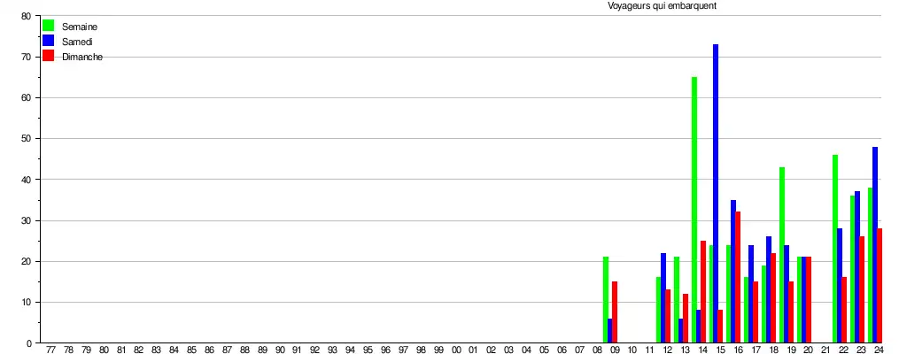 Le graphique et le tableau montrent le nombre de passagers qui en moyenne embarquent durant la semaine, le samedi et le dimanche[9].