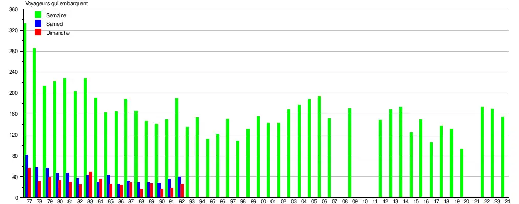 Le week-end et les jours fériés, aucun train ne s'y arrête.