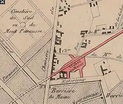 - ↑ A. Bassinet, « rapport no 34, au nom de la troisième Commission sur le projet de convention avec la Compagnie des chemins de fer de l'Ouest relatif - 1° à la suppression des passages à niveau entre les XIVe et XVe arrondissements de Paris; 2° à l’amélioration des voies entre Paris et Clamart et à la transformation de la gare Montparnasse- 13 avril 1897 : Rapports et Documents », dans Conseil municipal de Paris, t. première partie de 1 à 100 année 1897, Imprimerie Municipale, (lire en ligne), p. 397.