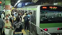 Foule sur le quai de la ligne Yamanote.