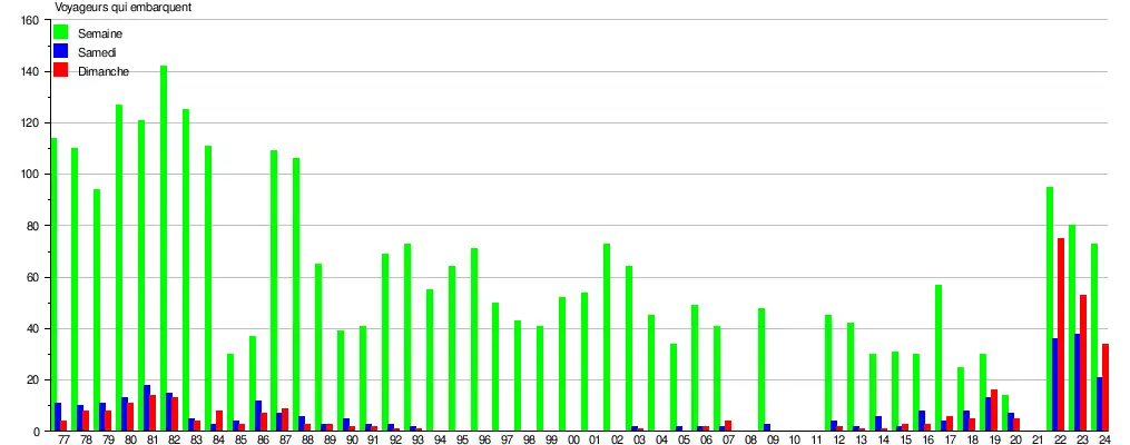 | Nombre de voyageurs qui embarquent à la gare de Viville | |||