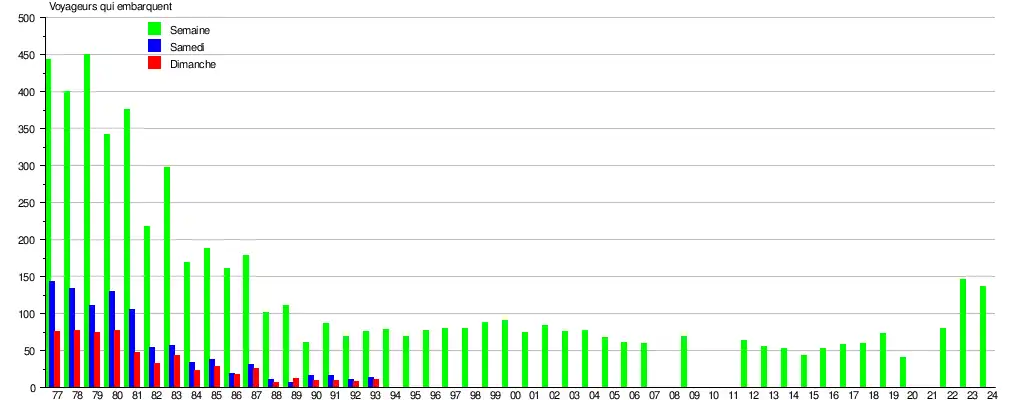 | Nombre de voyageurs qui embarquent à la gare de Le Campinaire | |||