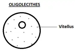 Les œufs oligolécithes sont pauvres en vitellus[1], leur gastrulation se fait par embolie.