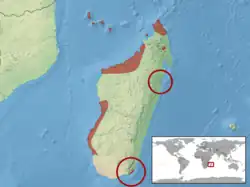 Cette espèce se rencontre à Madagascar, à Mayotte et à la Grande Comore[1].