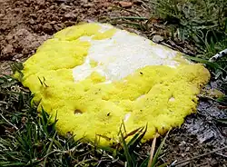 Les myxomycètes sont des causes possibles, car leur apparition est assez soudaine, présentant une apparence très gélatineuse au premier abord pour plus tard prendre une forme poussiéreuse qui est dispersée par la pluie et le vent. Leur gamme de couleurs va du blanc le plus pur comme chez Enteridium lycoperdon au rose comme chez Lycogala epidendrum, ainsi qu'au violet, au jaune, au orange et au marron chez d'autres espèces.