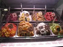 Gelato (prononciation italienne : [dʒelaːto] ; pluriel : gelati) est, en italien, français et anglais, une variante de dessert glacé artisanal de la cuisine italienne, à base de lait, et non de crème, différents sucres, et arômes tels que des fruits et purées fraîches, généralement plus faibles en calories, en graisses et en sucre que les crèmes glacées[1].
