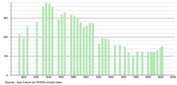 - ↑ Population municipale de référence en vigueur au 1er janvier 2025, millésimée 2022, définie dans les limites territoriales en vigueur au 1er janvier 2024, date de référence statistique : 1er janvier 2022.