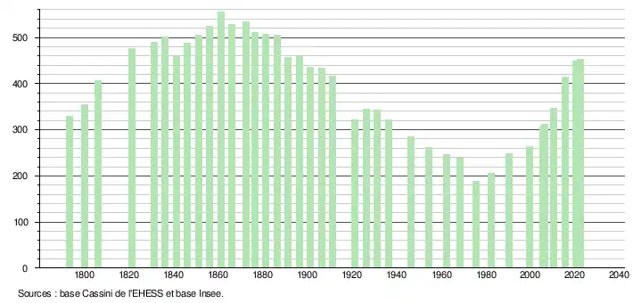 - ↑ Fiches Insee - Populations de référence de la commune pour les années 2006, 2007, 2008, 2009, 2010, 2011, 2012, 2013, 2014, 2015, 2016, 2017, 2018, 2019, 2020, 2021 et 2022.