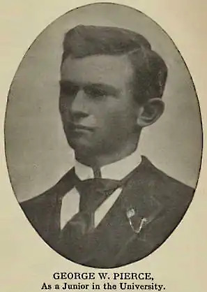 G. W. Pierce est le cadet des trois enfants d'un éleveur texan. Las, comme il l'écrira plus tard, « d'aller remplir des seaux crevés au puits de la ferme paternelle », il se distingue dans ses études : excellent élève au collège de Taylor, il étudie d'abord à l'université du Texas, où il est pris en charge par Alexander Macfarlane, avec qui il cosigne un article[1] destiné au premier numéro de la Physical Review. Il enseigne au lycée de Dallas (1896-7), est avoué près le tribunal du comté de Bastrop jusqu'à ce qu'il obtienne sa bourse pour étudier à Harvard en 1898. Il soutient sa thèse de doctorat, consacrée à la mesure des ondes courtes, en 1900. Après un voyage d'étude post-doctoral à travers l'Europe, qui lui fait découvrir les cours de Ludwig Boltzmann, il est recruté comme maître-assistant à Harvard. Là, il est l'un des fondateurs du Wicht Club (1903–1911), groupe de jeunes enseignants qui désirent poursuivre leur formation tout en travaillant.